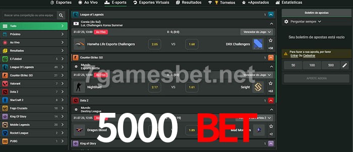 A aposta 5000 Bet oferece aos jogadores a experiência mais conveniente de apostas em eSports!